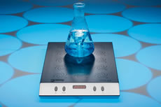 Agitador magnético ultra plano com seis posições de agitação para 6 frascos Erlenmeyer de 1000 ml, distância do ponto de agitação de 130 mm.