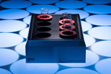 Bloco que combina agitação e aquecimento com 8 posições de agitação, 8 furos, Ø 87,2 mm, profundidade de 78 mm, adequado para frascos Erlenmeyer de 250 ml.