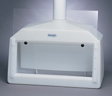 Esta capela possui uma carcaça de peça única moldada de plástico polietileno com um defletor interno plano e um sash de acrílico transparente que desliza sobre trilhos internos.