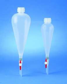 Funis de separação transparentes de plástico polipropileno durável e resistente à maioria dos agentes químicos, incluindo ácido hidrofluórico.