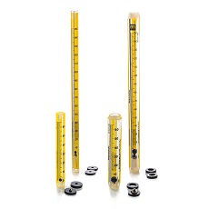 Usado para medições de fluxo no laboratório, fluxo em processos de plantas piloto, medição de gases em cromatografia, indicação e controle de gases em processos de produção e para indicação de velocidade de fluxo em sistemas de bombeamento ou de fluxo. Formado por vidro borossilicato resistente a choques, de parede grossa, esses indicadores de fluxo podem ser usados em pressões de operação de até 200 psi e temperatura máxima de 121°C. Eles possuem escalas de cerâmica fundida que são precisas dentro da escala total de ±2%. Reprodutibilidade de 0,25%. Furos afunilados uniformemente possuem estria interna para estabilizar a boia de vidro, aço inoxidável ou carboloy. Medição de fluxo através de leitura do centro da boia sobre a escala universal. O número da escala corresponde à velocidade de fluxo para o dado líquido ou gás em uma tabela de calibração que é fornecida. Os indicadores de fluxo estão disponíveis em quatro estilos. Escala de 65mm, tamanho 1-6 e escala de 150mm tamanho 1-5.
