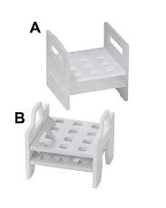 Estas duas racks acomodam cubetas com o mínimo de contato físico, reduzindo muito a chance de danos.