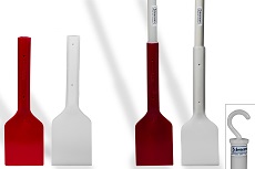 Raspadores de plástico quimicamente resistentes, lisos, são úteis para remover resíduos de filtros, limpam recipientes, homogeneízam e distribuem sólidos em fluidos, espalham pasta sobre áreas grandes, e muitas outras tarefas de raspagem, distribuição, agitação ou remoção de resíduos.