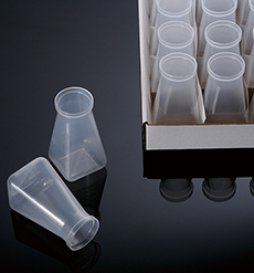 Garrafas para cultivos de Drosophila, feita de polipropileno, autoclavável. O fundo quadrado também é transparente e a garrafa possui um pescoço firme e rígido para facilitar o manuseio.
