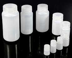 O corpo do frasco é feito de HDPE (polietileno de alta densidade) e a tampa é de PP (polipropileno). Possui grande resistência química para a maioria dos ácidos, álcalis e álcoois. Sem camada extra, cor natural.