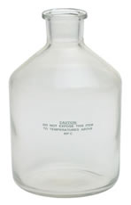 Reservatório de solvente para uso em distribuição de fase móvel de HPLC. O tamanho de 1000ml é uma substituição para uso com o modelo Hewlett-Packard HP-1090 HPLC (código da peça HP 9301-0656). A junção externa na parte superior de todos os tamanhos é polida, formando assim uma vedação entre a tampa de Teflon e a garrafa. Uma rolha opcional permite armazenamento conveniente do solvente.