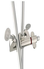 Dois suportes de braçadeira com um suporte giratório central para permitir inclinação da braçadeira em qualquer ângulo em planos paralelos. O parafuso de ajuste externo permite proximidade entre os itens a serem segurados. Tamanho máximo do aperto de 3/4” (19mm).