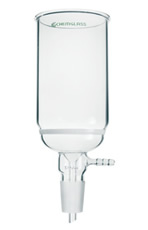Similar ao CG-1204, mas alongado para realizar separações rápidas usando uma bomba de vácuo. Todos os funis possuem junção interna cônica padronizada inferior com uma extremidade vedada para gotejamento e uma saída para conexão de bomba de vácuo. Todos os tamanhos possuem disco poroso áspero. Tamanhos especiais também estão disponíveis.