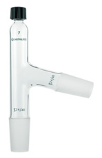 O adaptador possui uma rosca #7 Chem-Thread na parte superior para uma vedação segura a vácuo de termômetros de haste simples. Com junções internas de mesmo tamanho na parte inferior e braço lateral em um ângulo de 75° com o outro. Fornecido completo com uma tampa de compressão e O-ring Viton. O-ring em perfluoro está disponível.