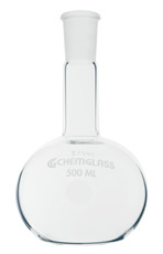 Frasco de fundo plano de pescoço único com junção externa cônica padronizada.