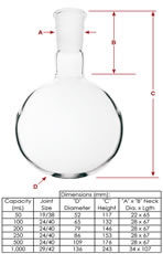 Frasco de quartzo de fundo redondo e pescoço único com junção externa cônica padronizada.