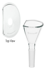 Similar ao CG-1720, mas com um lado plano para permitir que o funil seja utilizado em frascos com múltiplos pescoços onde o espaço é limitado. A dimensão do lado plano é a distância entre o centro da junção interna cônica padronizada e o lado plano do funil. Os funis possuem paredes em ângulo de 60° com junção interna cônica padronizada.