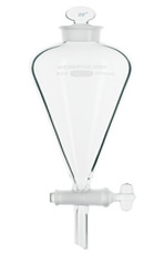 Funil separatório estilo Squibb com torneira de vidro. Fornecido completo com frasco com rolha de vidro do tamanho listado.