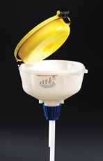 O funil ecológico é um item chave na segurança projetado para reduzir a sua exposição a resíduos perigosos e para evitar a evaporação química tóxica. O funil é feito de polietileno de alta densidade e resistente quimicamente (HDPE) e possui haste com 11” de comprimento que reduz efetivamente a evaporação química. Uma construção no tubo de ventilação libera a pressão e permite que o resíduo de solvente flua rapidamente através do filtro, que prende grandes partículas sólidas e barras de agitação durante o despejamento.
