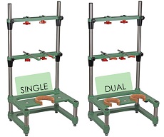 Novos kits de reatores de bancada em pequena escala estão disponíveis com substituição de vidraria ou como um sistema completo com autocontenção com suporte de bancada, agitador suspenso e vidraria. O design único do suporte do reator de bancada permite fácil instalação/remoção de vidraria e se adequa à maioria das capelas de bancada. O suporte é facilmente convertido de uma configuração de reator único, ou duplo ao trocar a placa de suporte de fundo. O sistema é fornecido completo com os componentes listados abaixo e numerados no desenho esquemático. Os itens destacados em verde são fornecidos apenas com o kit de vidraria. Observação: outras configurações de vidraria estão disponíveis.