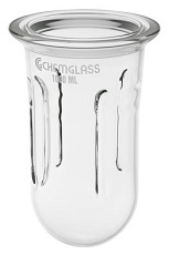 Frasco de reação cilíndrico construído com uma borda tendo um sulco formado na superfície de vedação da borda. Os entalhes aumentam a mistura do conteúdo do frasco durante a agitação. A borda também é plana para permitir uma vedação lubrificada com qualquer uma das tampas CG-1940 até CG-1946.