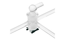 As torneiras possuem três braços laterais fechados separados em 90°. O plugue de vidro sólido possui um furo com formato em “T” de forma que dois ou três dos braços laterais possam ser conectados de uma só vez. Todos os tamanhos exceto o furo de 6mm de tamanho (plugue tamanho 25/52) são fornecidos completo com um dispositivo de retenção em metal CG-423. O plugue de tamanho 25/52 é fornecido completo com um clipe Keck #29 CG-145.