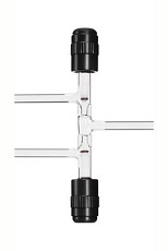 A válvula CHEM-VAC™ com configuração de três vias para uso na construção de sistemas de distribuição, adaptadores, etc. A válvula possui plugue em TFE com três o-rings, a extremidade com o-ring faz a primeira vedação no local afunilado formado com precisão. Os o-rings no eixo sem rotação formam uma excelente vedação dinâmica entre o plugue em TFE e o cano de vidro. Fornecido completo com o-rings Viton.