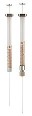 As seringas são projetadas para uso tanto em cromatografia líquida como gasosa. Devido à extremidade toda em Teflon, elas também podem lidar com líquidos altamente corrosivos ou ultrapuros. Com as tolerâncias exatas mantidas na fabricação dessas seringas, todos os componentes são intercambiáveis dentro de cada faixa de tamanho. Disponível nas capacidades de 5µl a 50ml com escolha das terminações da extremidade listadas. Seringas de agulha fixa e removível são fornecidas com agulhas de 2” de comprimento com ponto de estilo “A” (bisel 22°). Observação: Extremidade Luer em Teflon ou seringas Luer de trava não são fornecidos com agulha. |