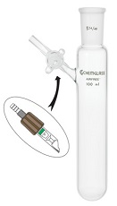 Tubo de formato cilíndrico útil para armazenamento ou reações simples. O tubo possui junção cônica externa padrão. Disponível com escolha de torneira de vidro alto vácuo 2mm tendo um dispositivo S.S. de retenção de pressão constante ou uma válvula de entrada Chem-Cap® AIRFREE® 0-4mm.