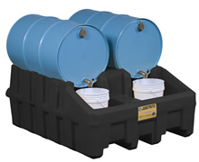 Sistema de gerenciamento de tambores EcoPolyBlend™: Fabricado em Polietileno 100% reciclado, design arrojado para empilhamento, armazena até quatro tambores de 110 e/ou 200 litros com líquidos inflamáveis de classe 1B ou 1C e travamento de tambores quando encaixados. O sistema consiste de três partes: Um módulo base, um módulo de empilhar e uma prateleira dispensadora de líquidos.