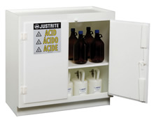 Fabricados de Polietileno, possuem ótima resistência a produtos químicos corrosivos, design liso e bonito, reservatório de contenção de líquidos de 51 mm e, em unidades maiores, as prateleiras se ajustam a cada 76 mm. Os ganchos na porta aceitam cadeados para maior segurança.