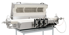 Os fornos tubulares RS podem ser utilizados tanto para funcionamento horizontal como para funcionamento vertical. Mediante a utilização da vasta gama de acessórios, estes fornos tubulares profissionais podem ser equipados para cada processo específico. Através da ampliação com diferentes conjuntos de injeção de gás é possível trabalhar sob uma atmosfera de gás de proteção, vácuo ou mesmo com gases inflamáveis.