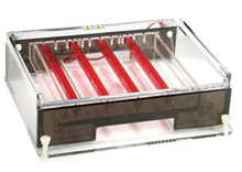 Gel Size: (W x L) 23 x 25 cm O Owl A6 Wide Gel System oferece um método bastante simples, prático e rápido para a corrida de diversas amostras em um único gel de agarose. 25-200 amostras podem ser executadas simultaneamente sem comprometer a qualidade da corrida. O Owl A6 Wide Gel System incorpora o design Owl à prova de vazamentos. A bandeja de géis UVT é equipada com uma junta de vedação que permite com que o gel se encaixe perfeitamente na bandeja, proporcionando vedação à prova de vazamentos. O nivelador integrado garante a modelagem de géis uniformes, espessos e planos. O carregamento de amostras torna-se ainda melhor caso for utilizado micropipetas especialmente designadas a este sistema. Ao utilizar uma pipeta multicanal, as amostras podem ser carregadas diretamente a partir de uma placa de 96 poços, 8 ou 12 amostras por vez. Este método acelera a transferência de amostras e reduz a possibilidade de erros. A utilização do eletrodo garante rápida execução sem comprometer a resolução das amostras. |