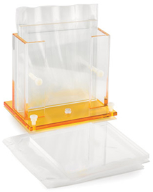 Gel Size: (W x L) 16 x 14 cm O JGC-2 Gel Casting System oferece uma forma única e inovadora para correr géis de poliacrilamida. O sistema de "bolsa" elimina a necessidade de utilizar fitas ou espaçadores inferiores e é utilizado para recolher o excesso de poliacrilamida e para selar o fundo do gel. O atual modelo garante o armazenamento dos géis através da adição de tampão e selagem quente, evitando riscos de desidratação. O sistema poderá correr de um a quatro géis dependendo da necessidade do pesquisador. Este sistema com poucas peças poderá durar anos em seu laboratório. É fácil, funcional e projetado para rápidas execuções de proteína em gel. |