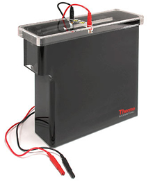 Transfer Area: (W x L) 20 x 18.50 cm O Owl VEP-3 Large Tank Electroblotting System é projetado para fornecer transferências uniformes e reprodutíveis de proteínas para géis de maior tamanho ou múltiplos mini géis. Este sistema proporciona transferências rápidas e eficientes de proteínas em géis de poliacrilamida. Um bloco removível de arrefecimento garante maior eficiência na transferência de calor. Barras magnéticas podem ser adicionadas à base inferior da câmara de tampão para permitir o aumento da circulação do tampão e maior consistência na troca de calor. Os cassetes são codificados para assegurar orientação adequada entre ânodo / cátodo. O cassete é projetado para facilitar o carregamento e fixação dos géis dentro do módulo interno. Estas características tornam este sistema o preferido para corridas de géis grandes. |